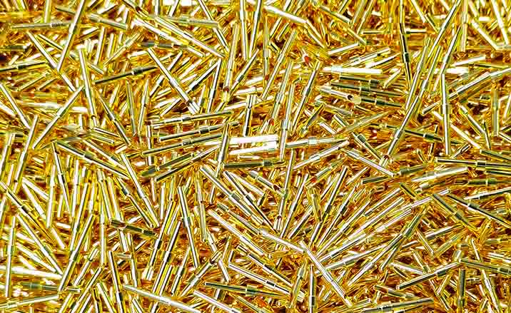 插針鍍厚金厚度通常通過電化學鍍(電鍍)等工藝來實現。在電鍍過程中,通過將插針作為陰極,金溶液中的金屬離子在其表面析出形成金層。鍍金厚度的控制可以通過調整電鍍時間、電流密度和金溶液的成分等參數來實現。